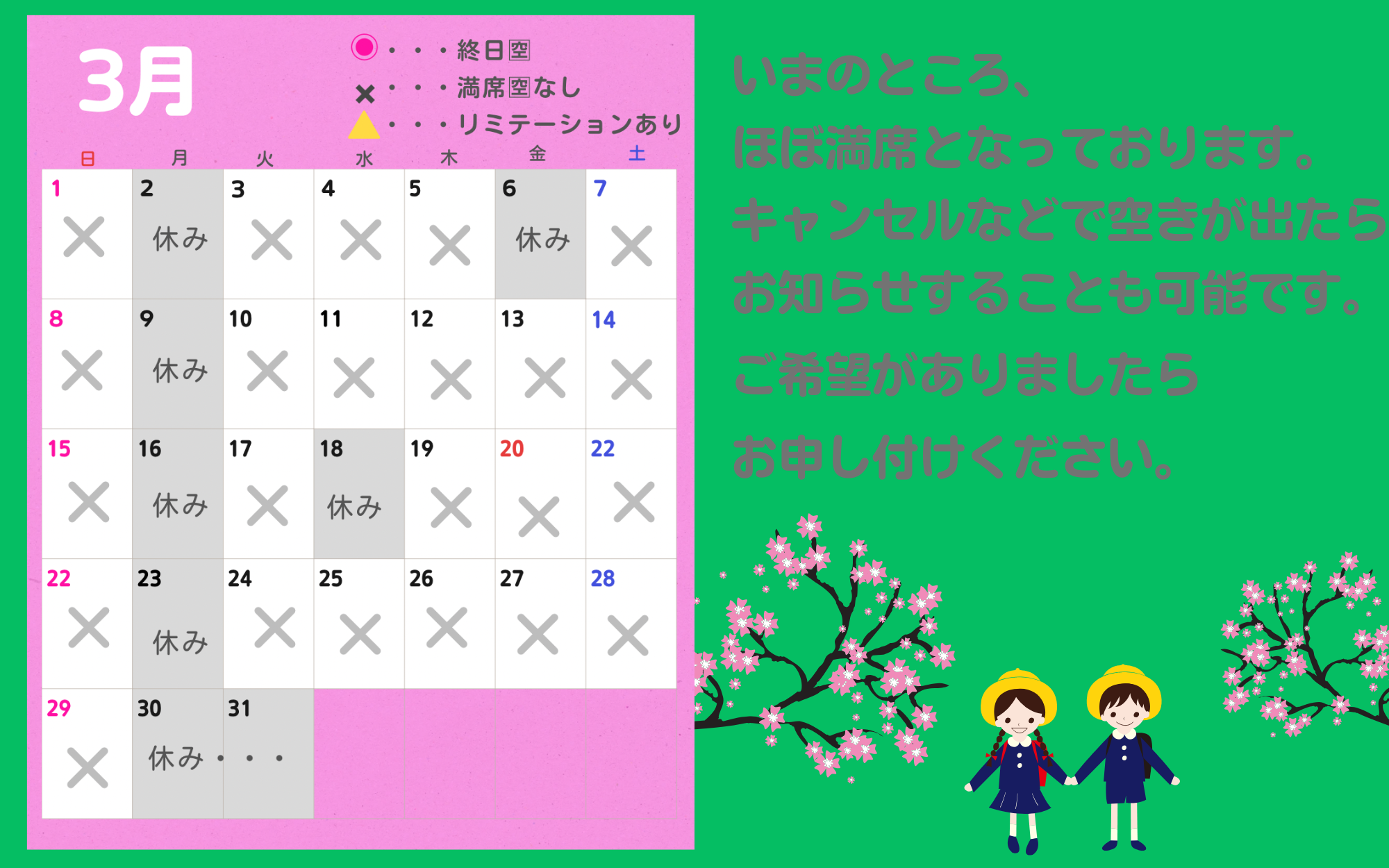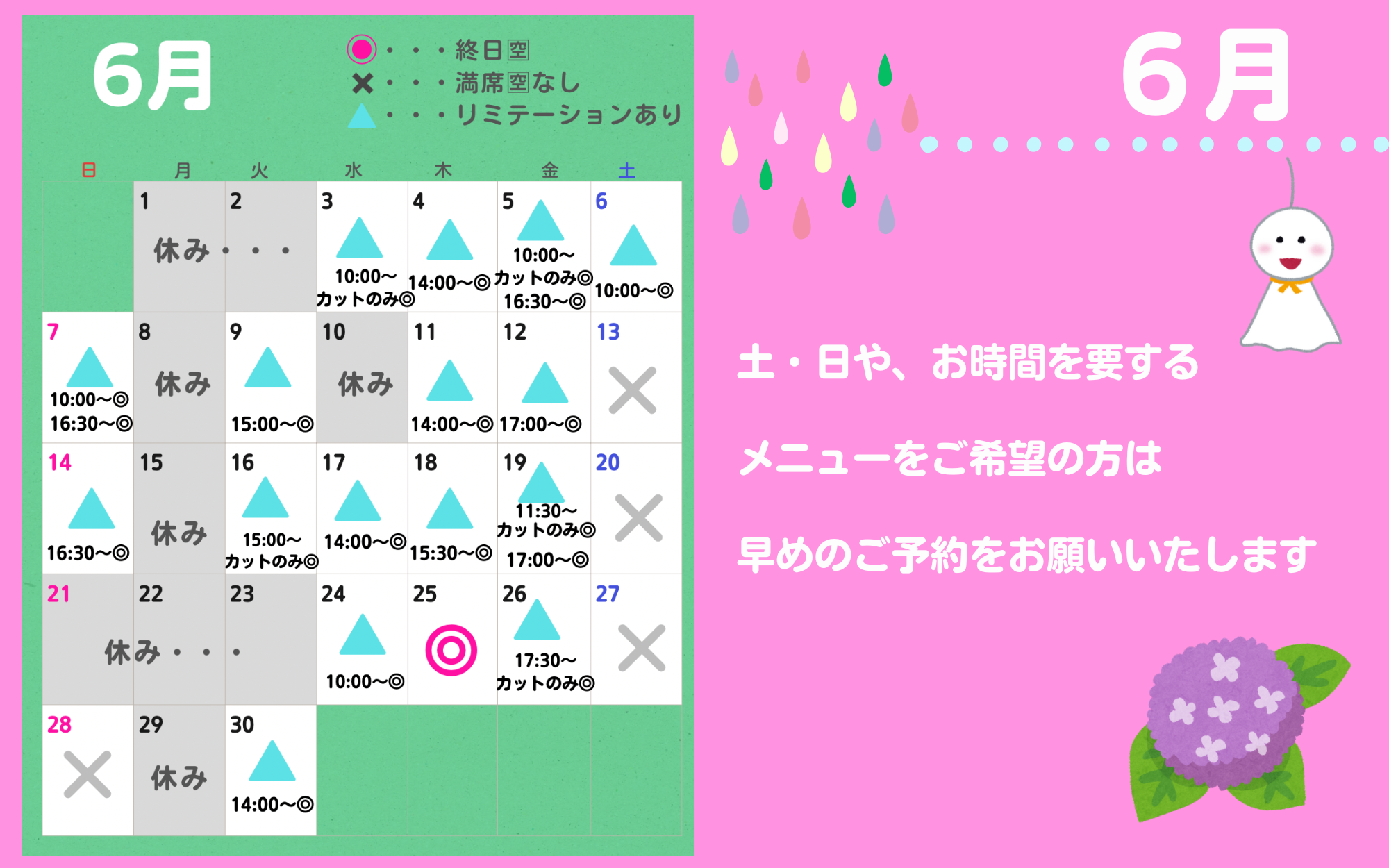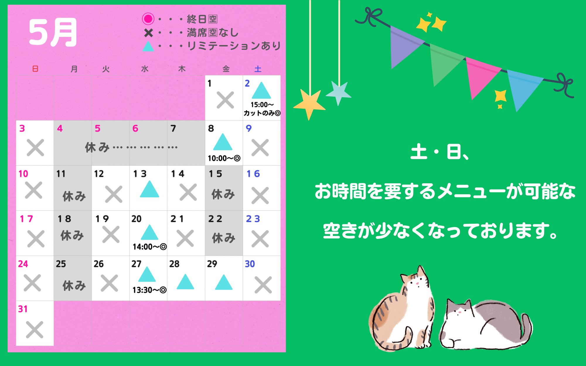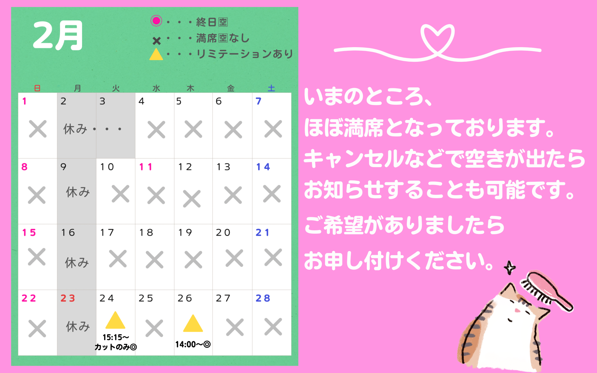予約状況に合わせて、カノンのお休みも変更になることもあります。