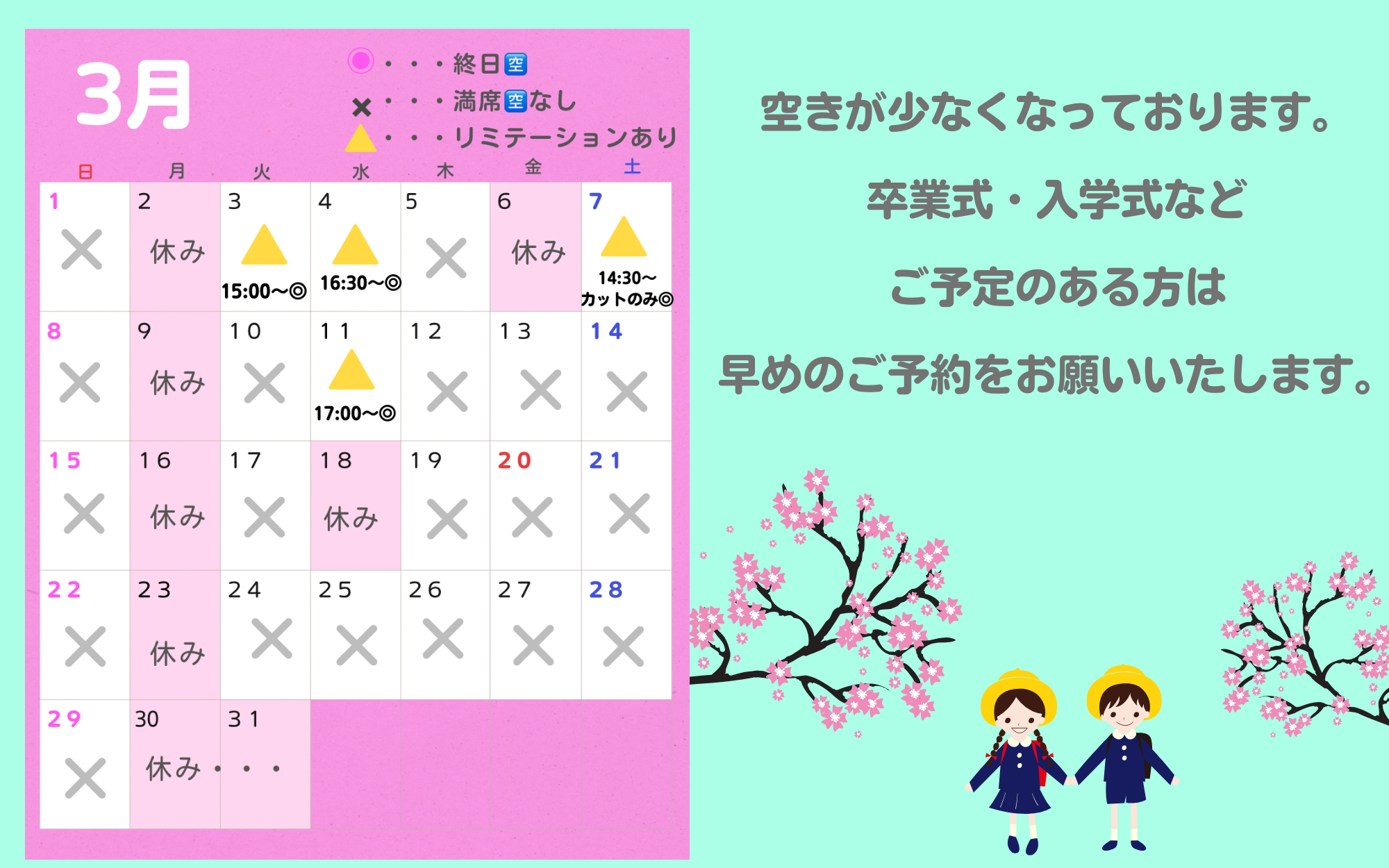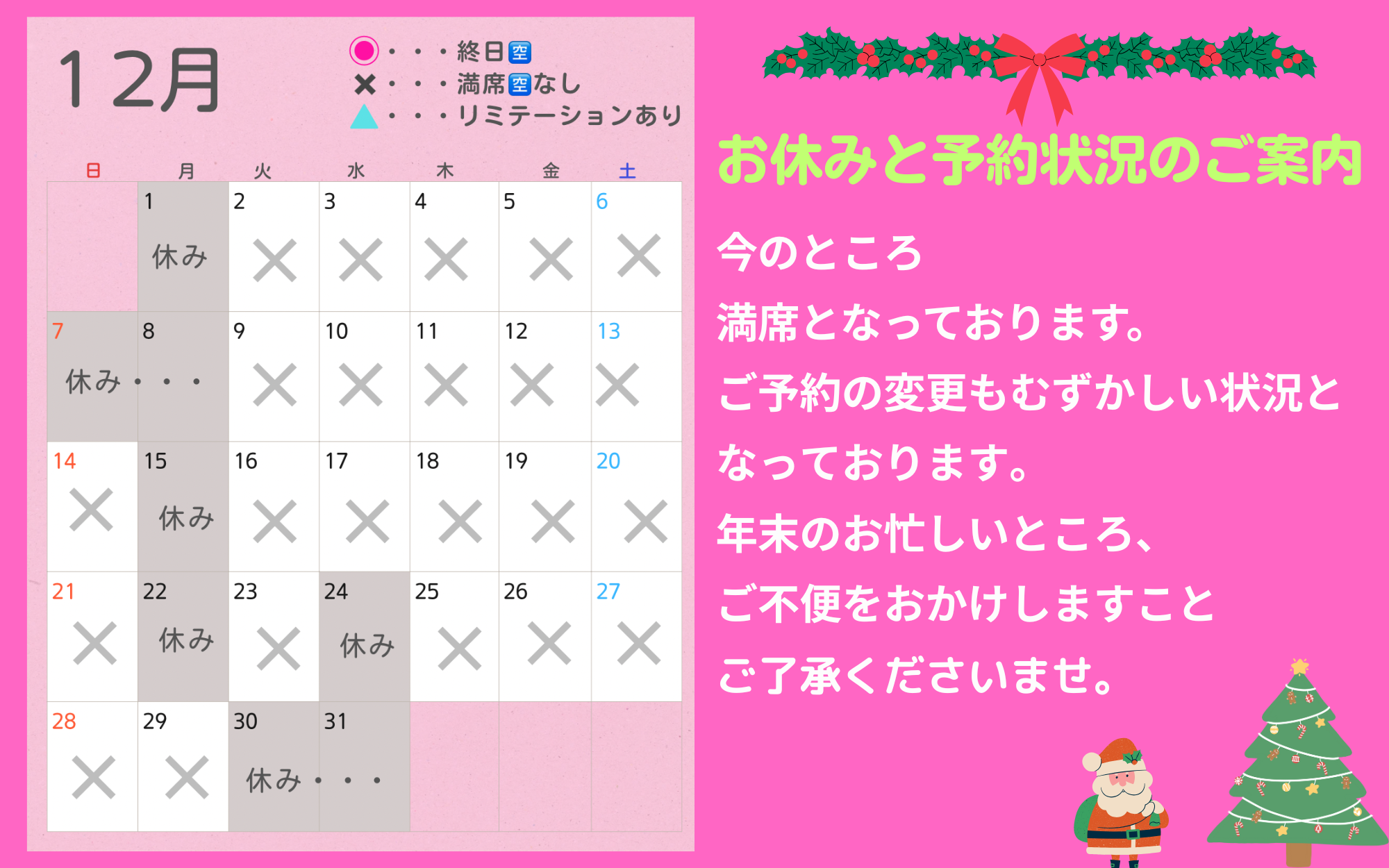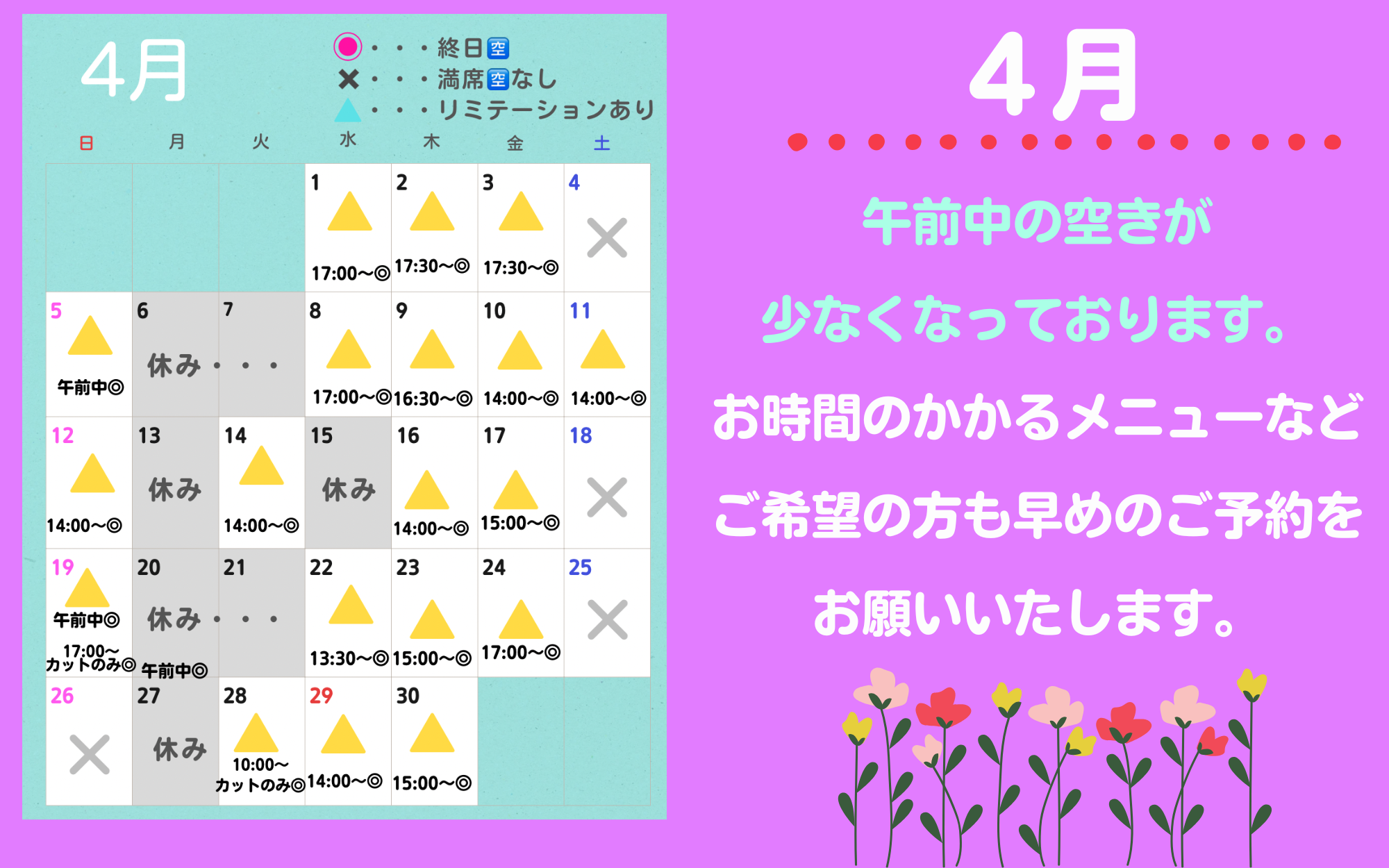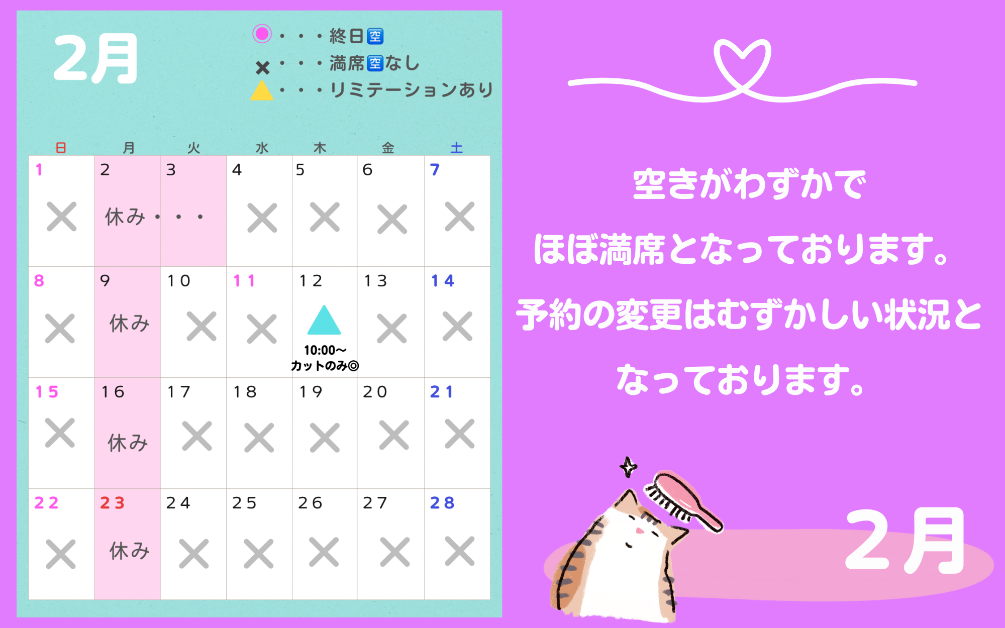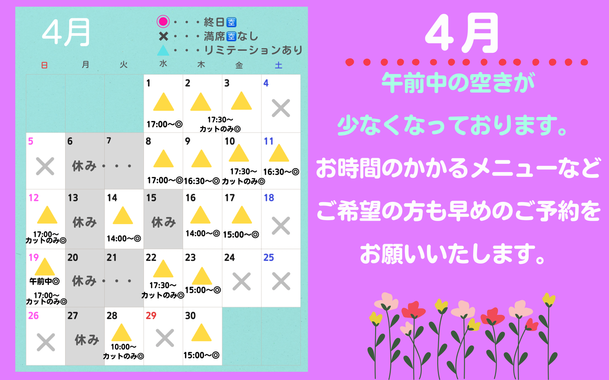 予約状況に合わせて、カノンのお休みも変更になることもあります。